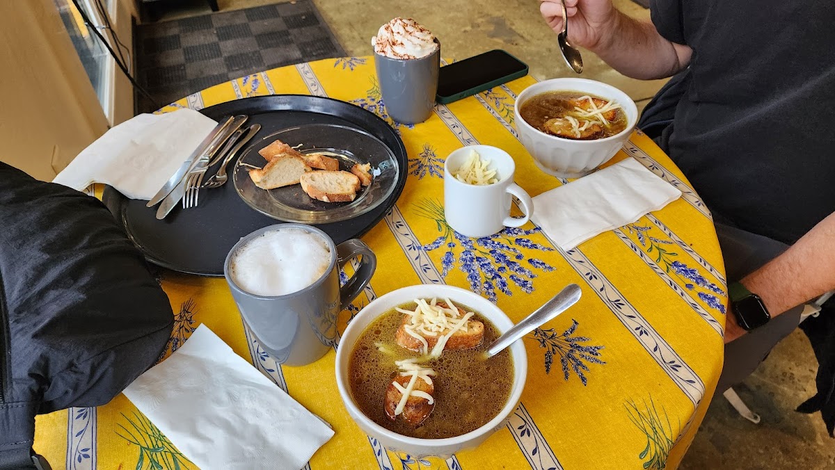 What stands out most here are the pastries and savory offerings that rotate with friendly daily specials. The croissants—especially the almond and almond chocolate versions—are flaky and buttery with subtle layers of richness that feel worth the momentary wait in line. The ham and cheese croissants, along with quiches like the spinach and bacon or classic quiche Lorraine, provide substantial bites for brunch or lunch. On cooler days, the French onion soup is a comforting choice alongside a rich café latte or double espresso, which locals seem to count on as part of their routine.